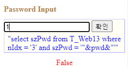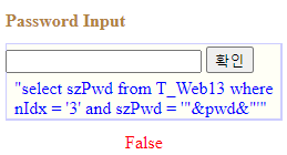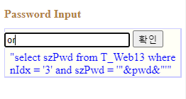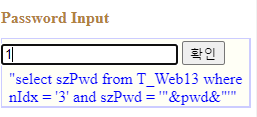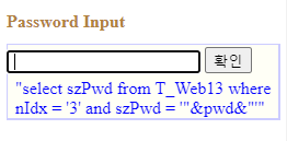 select szPwd from T_Web13 where nIdx = '3' and szPwd = '"&pwd&"'