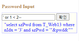 select szPwd from T_Web13 where nIdx = '3' and szPwd = '"&pwd&"'