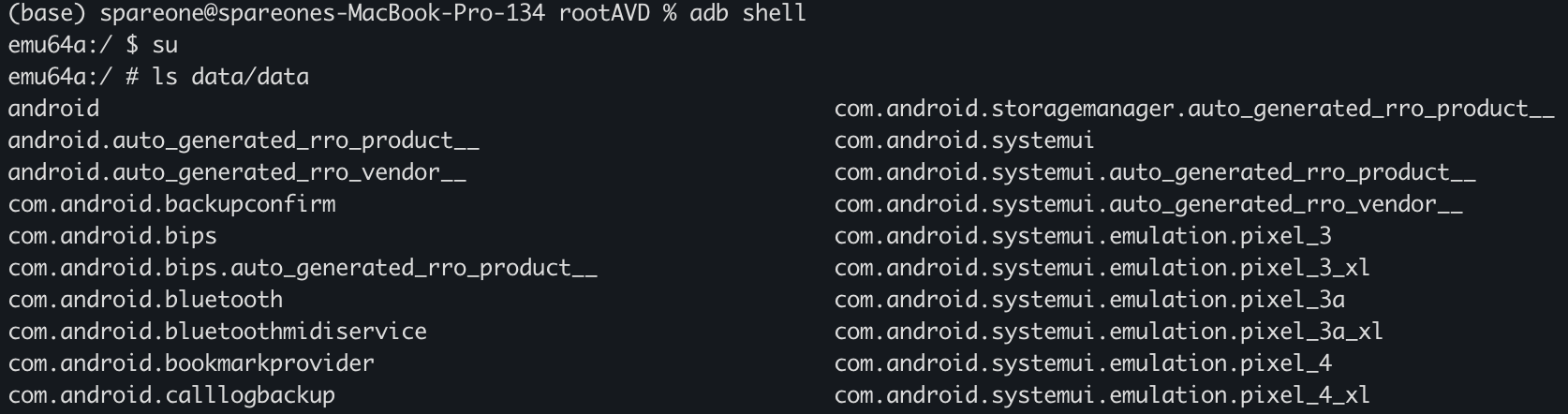 su  # 입력 후 에뮬레이터에서 권한 확인 시 승인. 10초안에 안하면 거절됨.