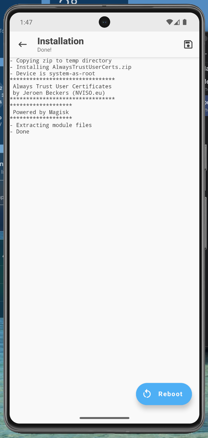 우리는 아까 rootAVD로 AlwaysTrustUserCerts 모듈을 설치했습니다.