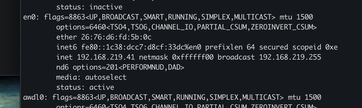 ipconfig /a (또는 ifconfig -a)로 로컬 IP를 확인합니다.