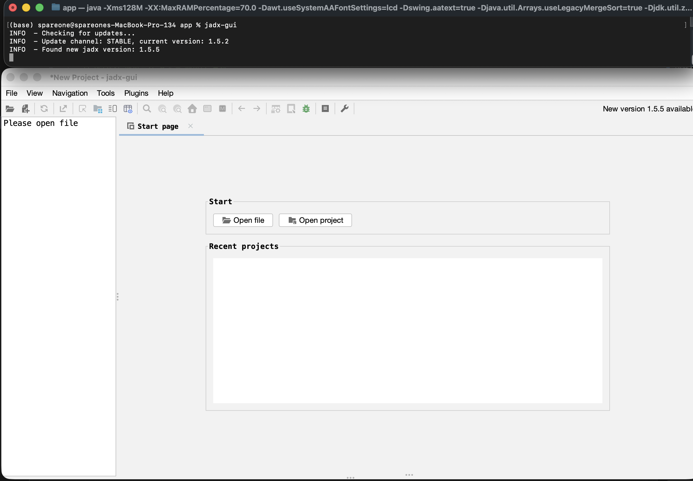 jadx-gui를 실행하면 jadx가 실행됩니다.