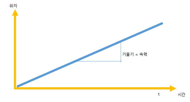 x증가량을 t(시간), y증가량을 s(위치)라고 하면 \(v = \frac{s}{t} \) 입니다.