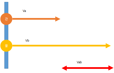 A가 본 B의 상대속도는 \( V_{AB} = V_{B}-V_{A} \)