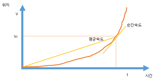 어느 한 점에서의 접선의 기울기는 순간 속도이고,