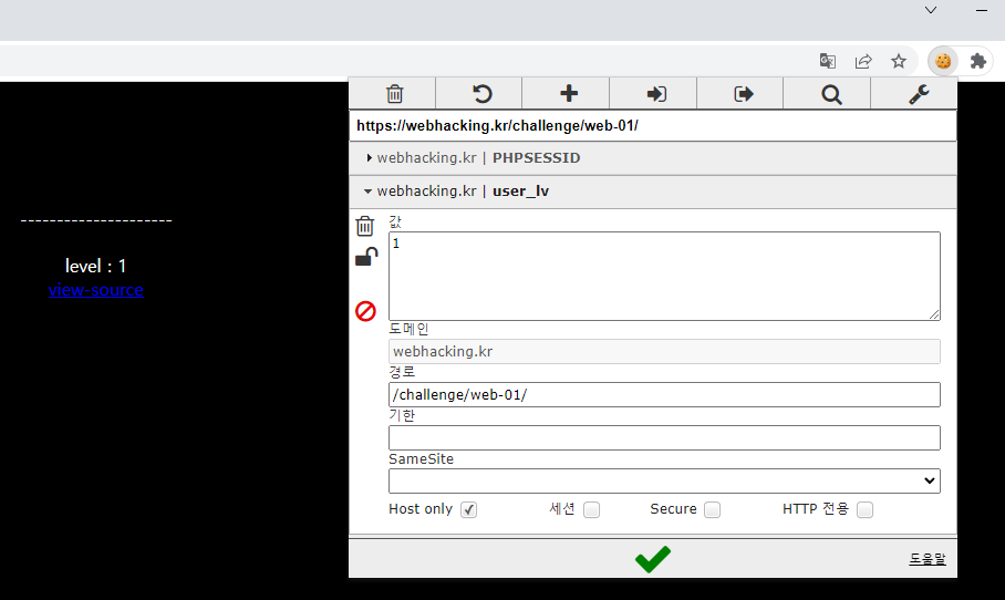 소스코드를 자세히 보면, 위 코드에서 user_lv 쿠키의 값을 1로 세팅했습니다.
