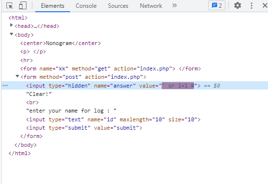 [그림 8] hidden 값에 SQL Injection을 시도하는 모습