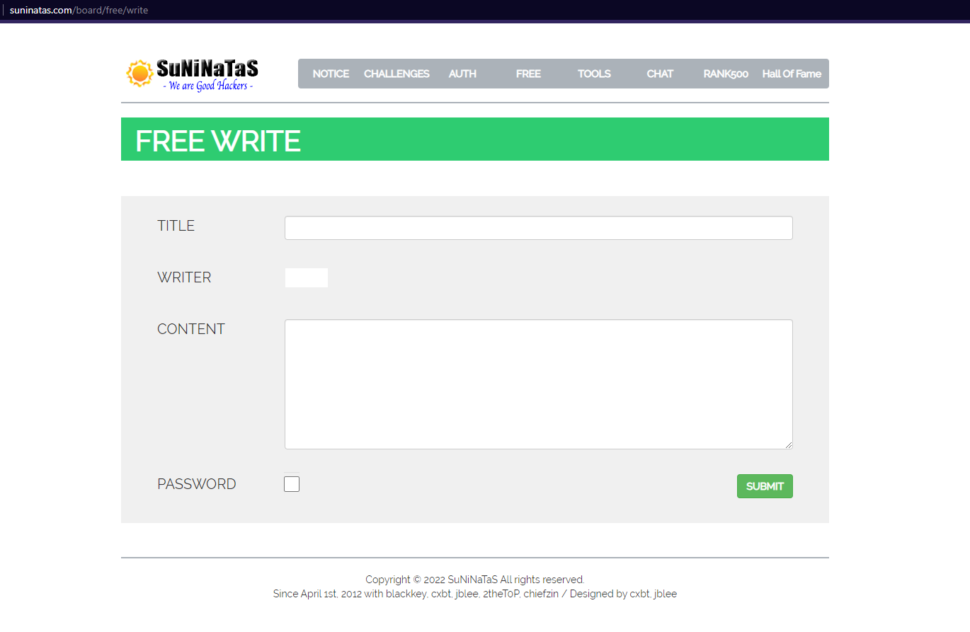 대충 아무거나 입력하고 SUBMIT를 눌러 봅니다. 이래도 되나 싶지만 한번 눌러봅니다.