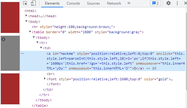 O 글자에 대한 코드입니다. onclick에 클릭하면 실행되는 script가 작성되어 있습니다.