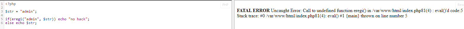 if(eregi("admin", $str)) echo "no hack";