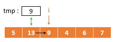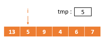 5가 더 작으므로, tmp의 값은 5 바로 뒤쪽이 되겠습니다.