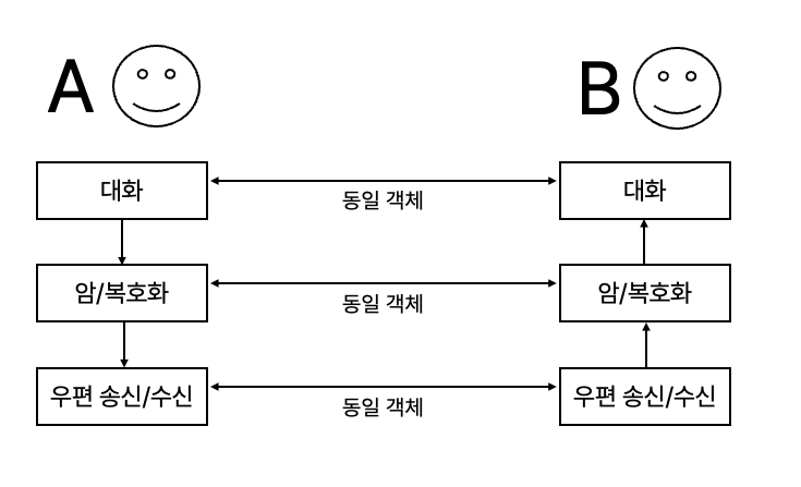2. 각 계층의 객체는 서로 동일 (평문, 암호문, 우편 등)